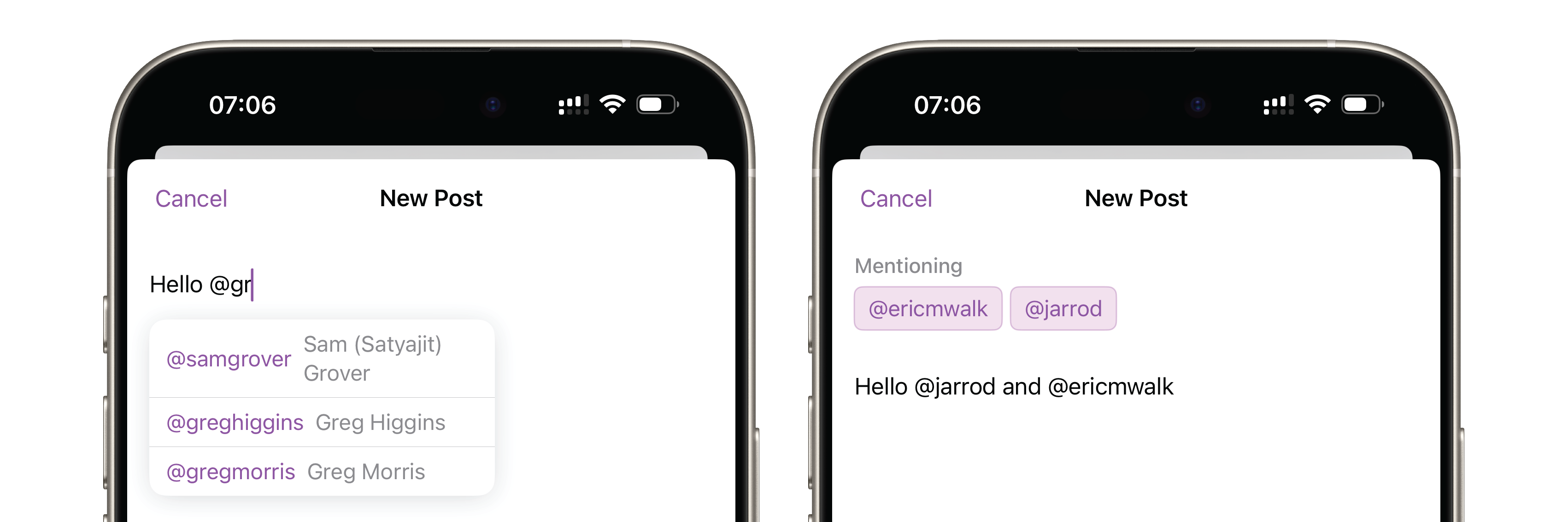 🔹 Smart Mentions – Start typing @, and Micro Social will instantly suggest people you follow, making tagging faster and more precise. The intuitive interface lets you easily add, remove, or adjust mentions without hassle.n