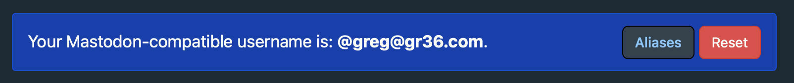On micro.blog head to Account > ActivityPub and click set Mastodon compatible username. The default for this is your micro.blog username, so mine would be @gr36@micro.blog