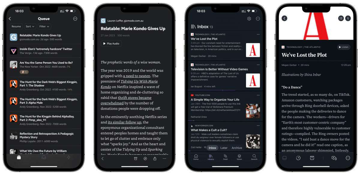 It feels like it is made to hack my reading. I can swipe this way and that way, highlighting until my heart's content. Optimised to get through my queue as quickly and as easy as possible by pushing me towards using keyboard shortcuts, recommending highlights and archiving everything for use later on. If I’m too busy to even read the article, I can ask AI to summarise it for me, and even write talking points on it.