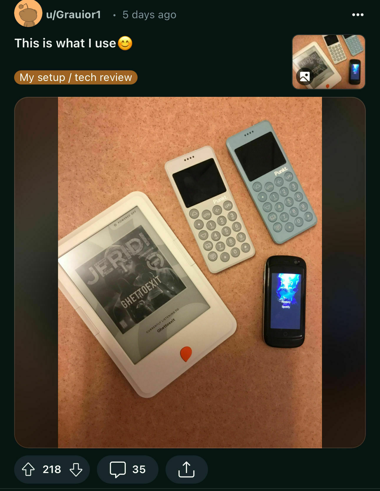 One of my favourite sub-Reddits is r/dumbphones, it is wonderful to see the phones people are still using and the ones available if you look hard enough. From old school Nokia remakes to mixes of flip phone keypads and Android. One of the post tends recently has been everyday carries, and seeing people using a flip phone and a notepad gives me hope. Then I see others lugging around a dumb phone, MP3 player, camera, kindle, and even more things — and that brings me back to reality.